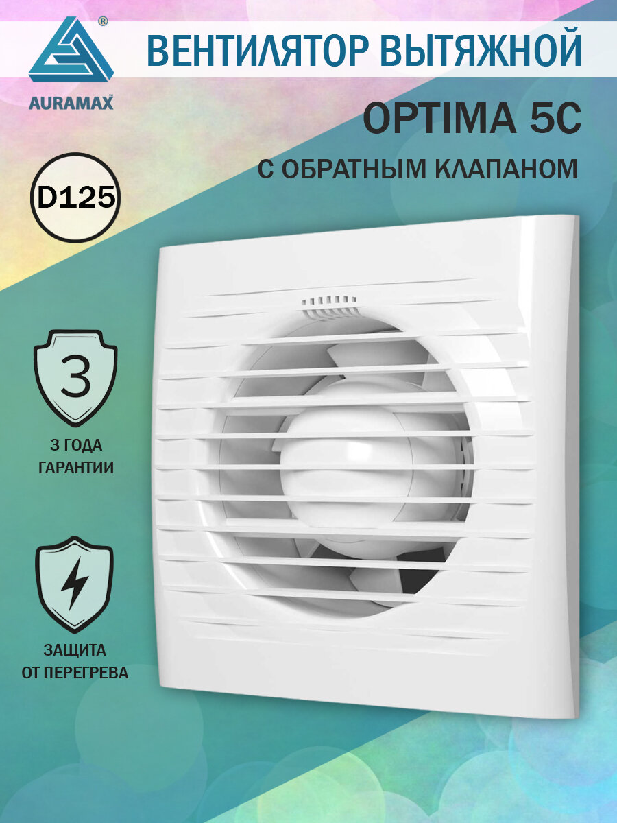 Вентилятор осевой вытяжной Auramax Optima 5C, с обратным клапаном, D 125, 14 Вт