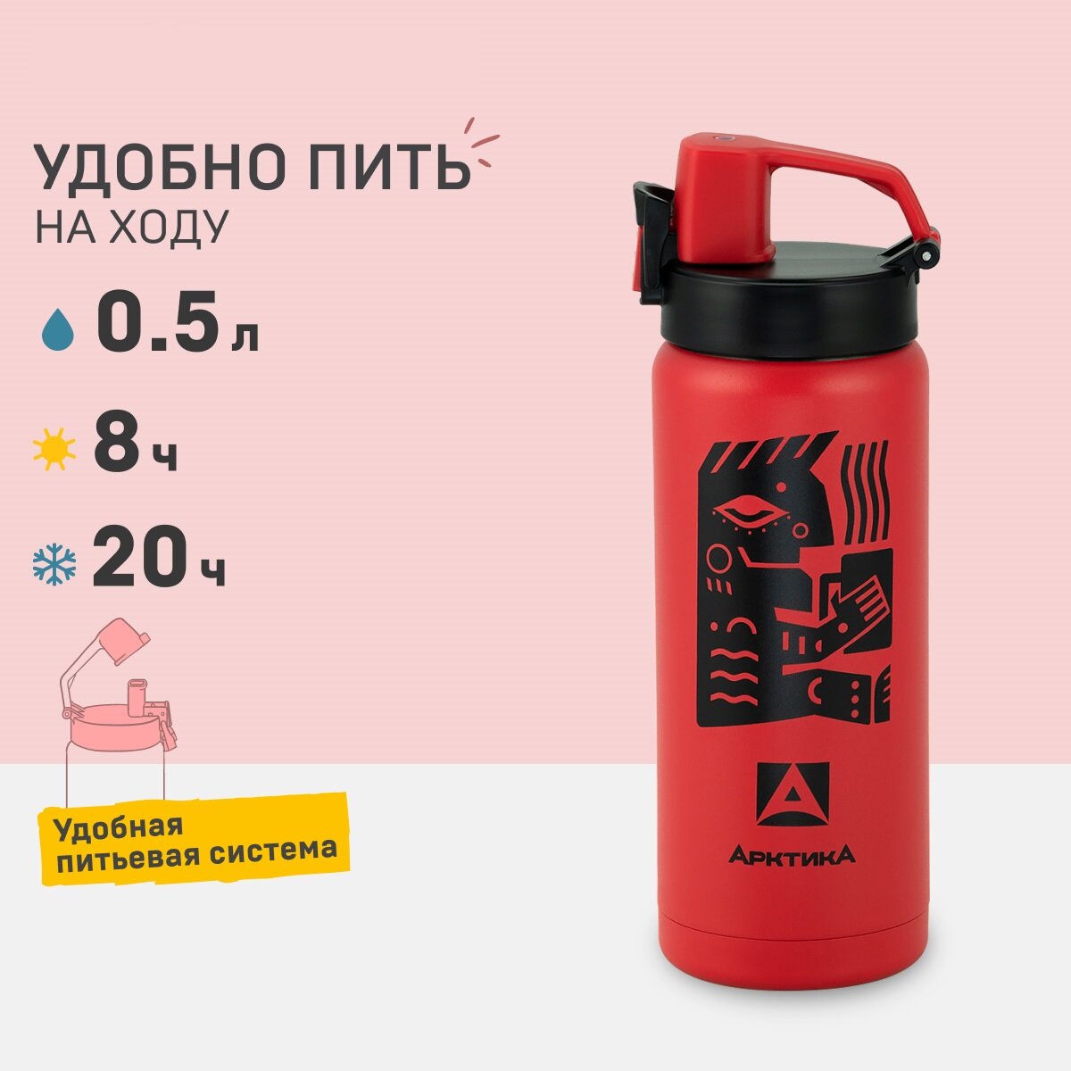 Термокружка для чая и кофе Арктика 702-500 красный ацтек 0,5 литров термостакан для напитков питьевой с поилкой и кнопкой-фиксатором 1 377 ₽ Подробнее