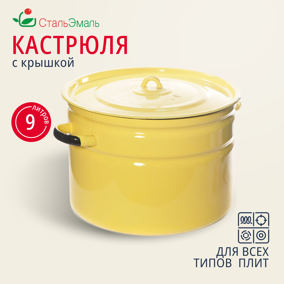 Кастрюля Кастрюля сталь, эмал, 9 л, с крыш, СтальЭмаль, 2с200, в асс, индукц