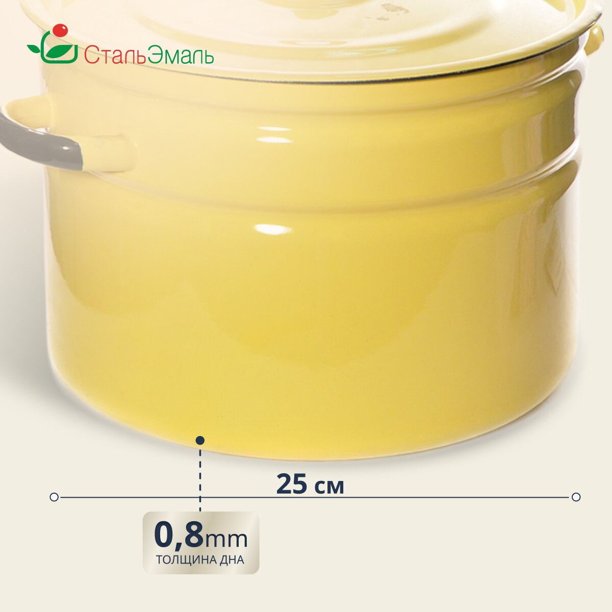 Кастрюля 7л 2с18с крем. Стальэмаль