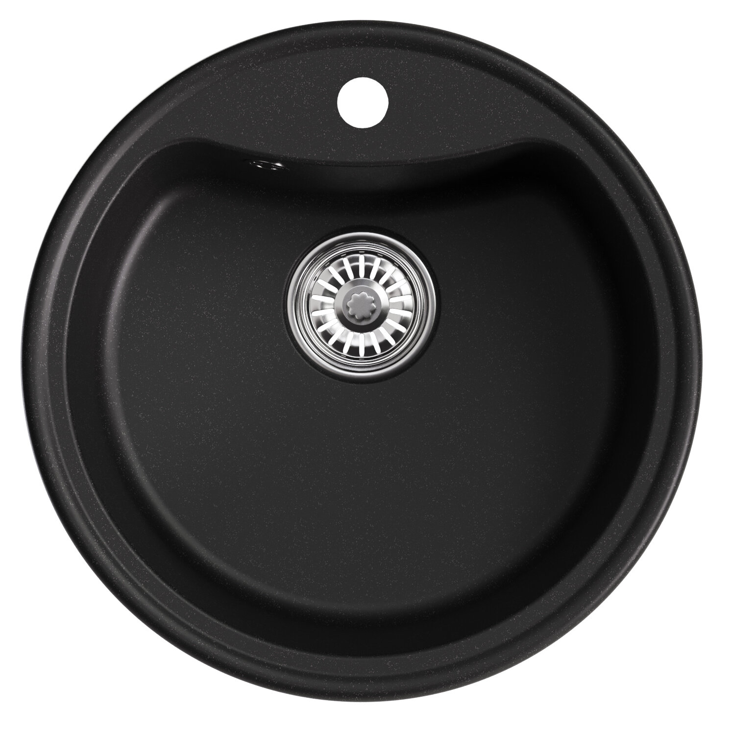 Кухонная мойка Мойкa ML-GM09 круглая, ультра-черная (344), 510 мм (глуб. чаши 190) NEW