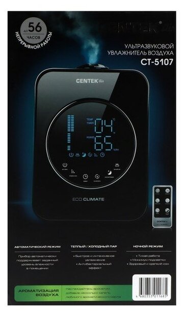 Ультразвуковой увлажнитель воздуха CENTEK СТ-5107 350мл/ч, 56ч работы, 4,5л, Сенсор, LED, Аром