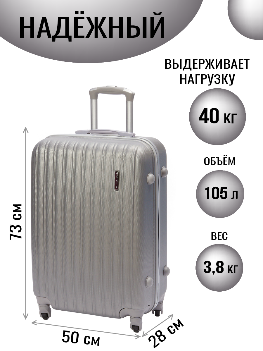 Чемоданы Чемодан на колесах дорожный огромный семейный багаж для путешествий l Тевин размер Л 73 см 105 л легкий 3.8 кг прочный abs пластик Серебряный