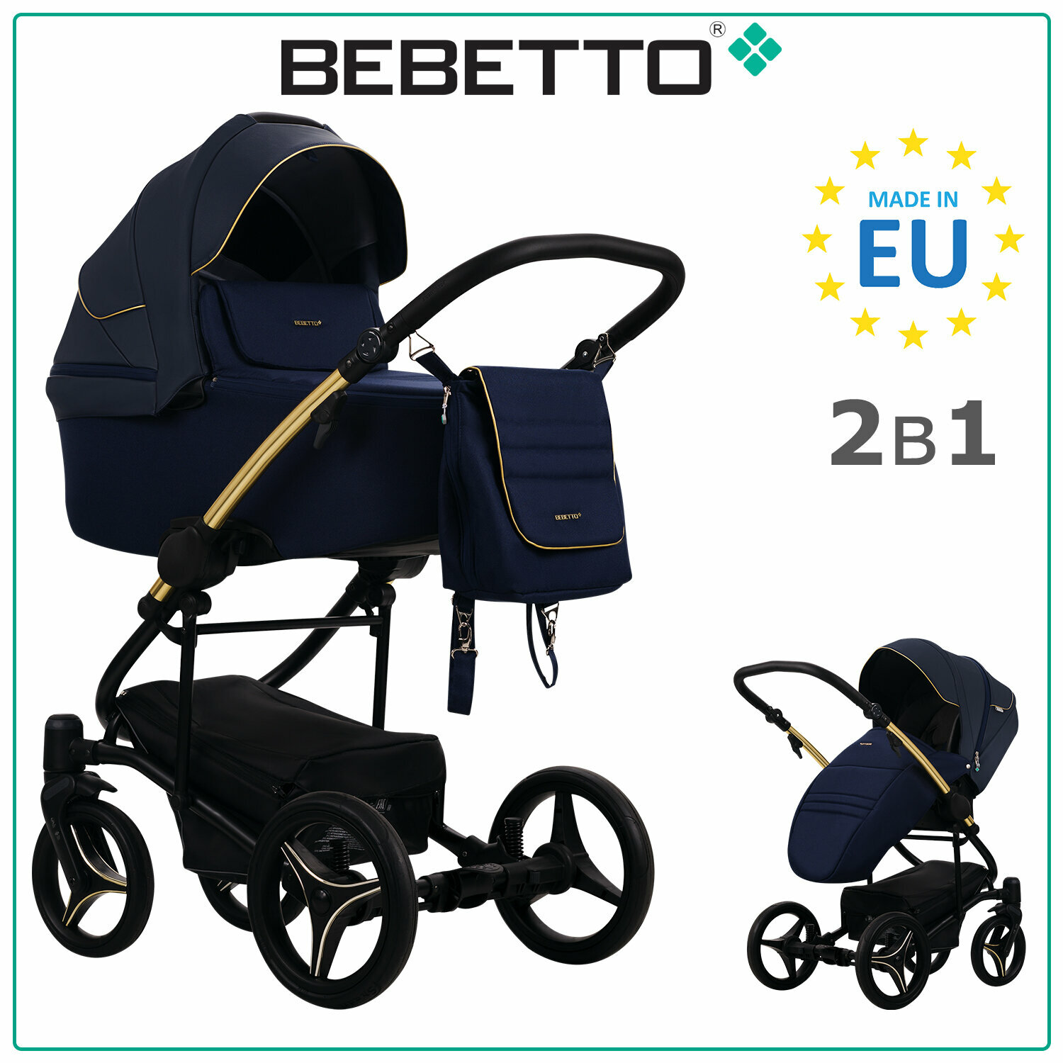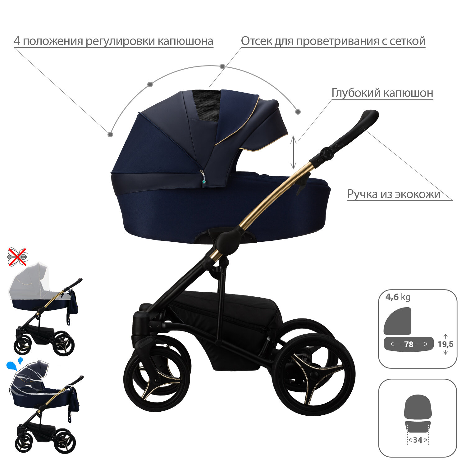 Детская коляска/2 в 1/Bebetto/Torino Si (экокожа+ткань)/SI01/рама золотая