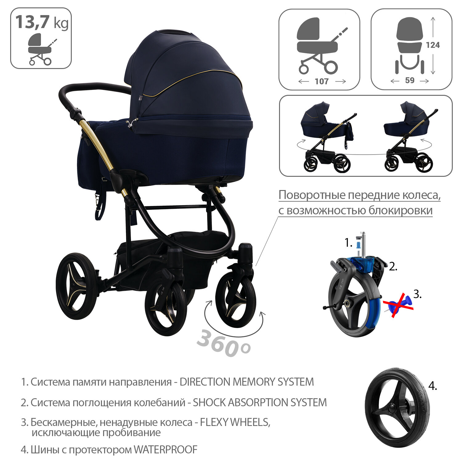 | Диаметр передних колес | 23 см |