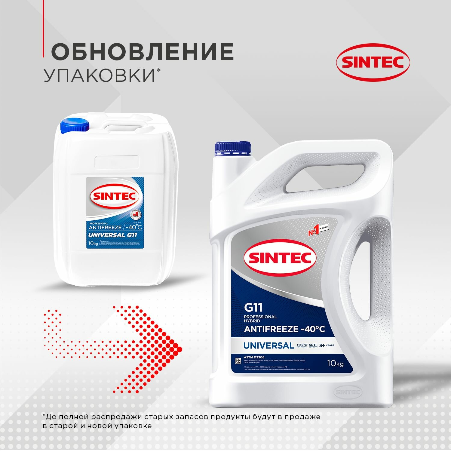 Охлаждающая жидкость SINTEC UNIVERSAL G11 -40 гибридный силикатный антифриз 10кг для двигателя автомобиля, охлаждающая жидкость синтек в авто, синий, готовый к применению