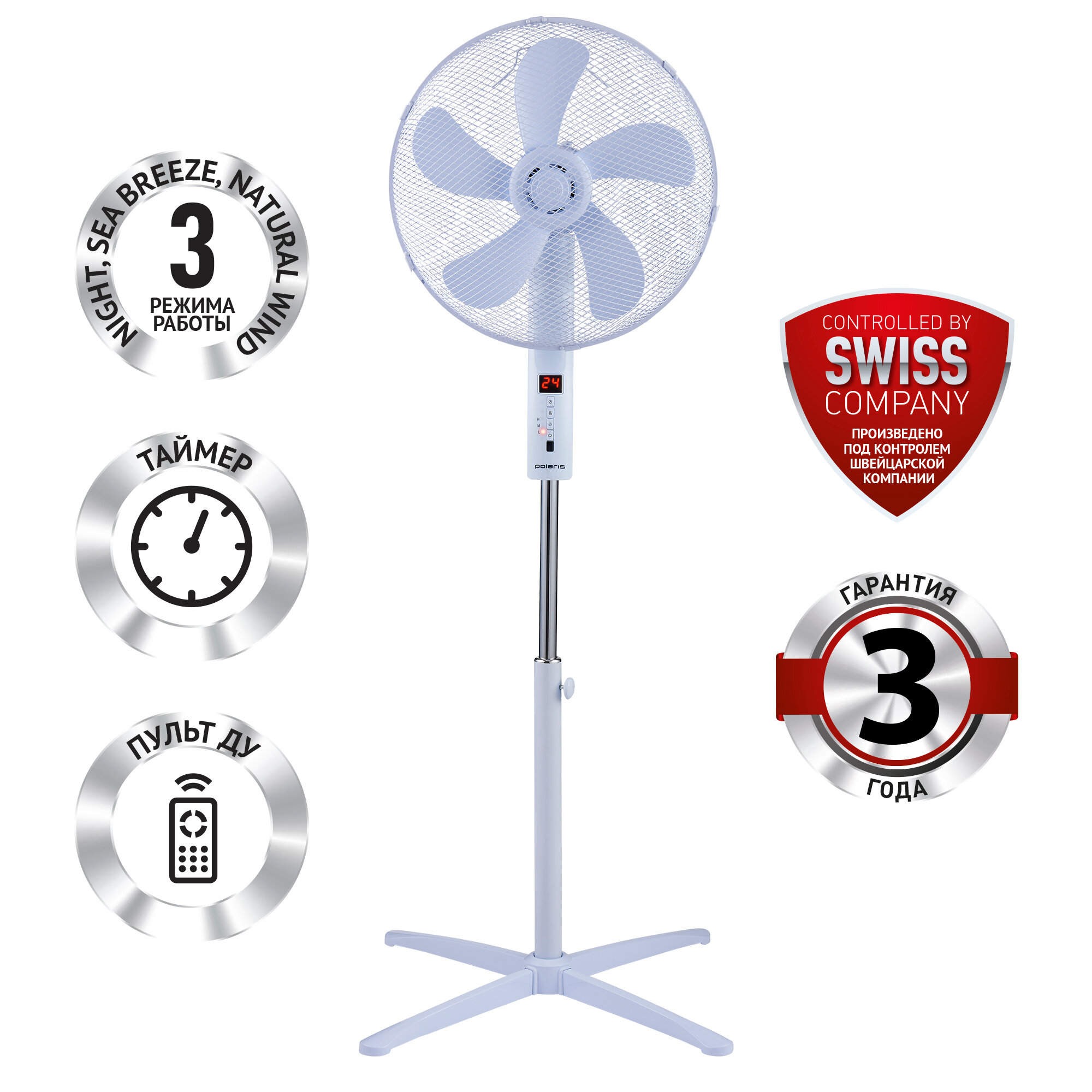 Вентиляторы Вентилятор напольный PSF4040RC 55Вт 3режима пульт ДУ белый
