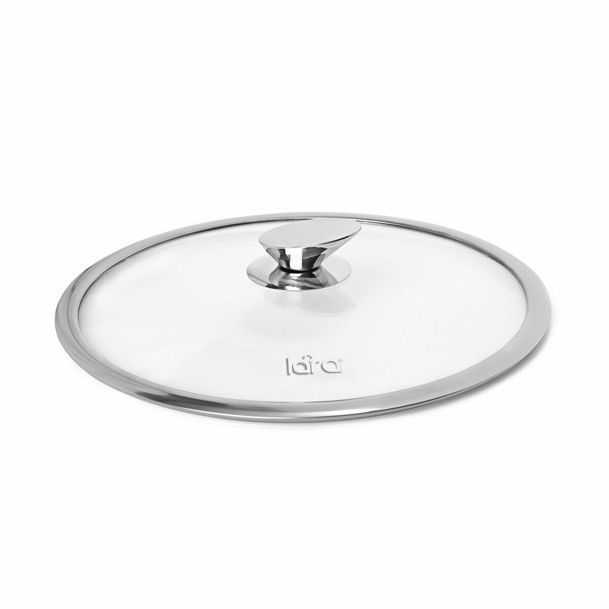 Lara Кастрюля нерж серия APPLE 26x14,5см,7.7л,стал.ручки,капсулир индукц дно,крышка стекло LR02-36