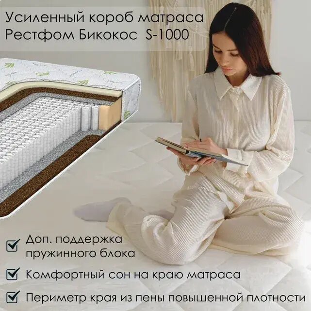 Матрас Everest Рестфом Бикокос S-1000, 90x195, высота 20 см, независимые пружины 16 786 ₽ Подробнее