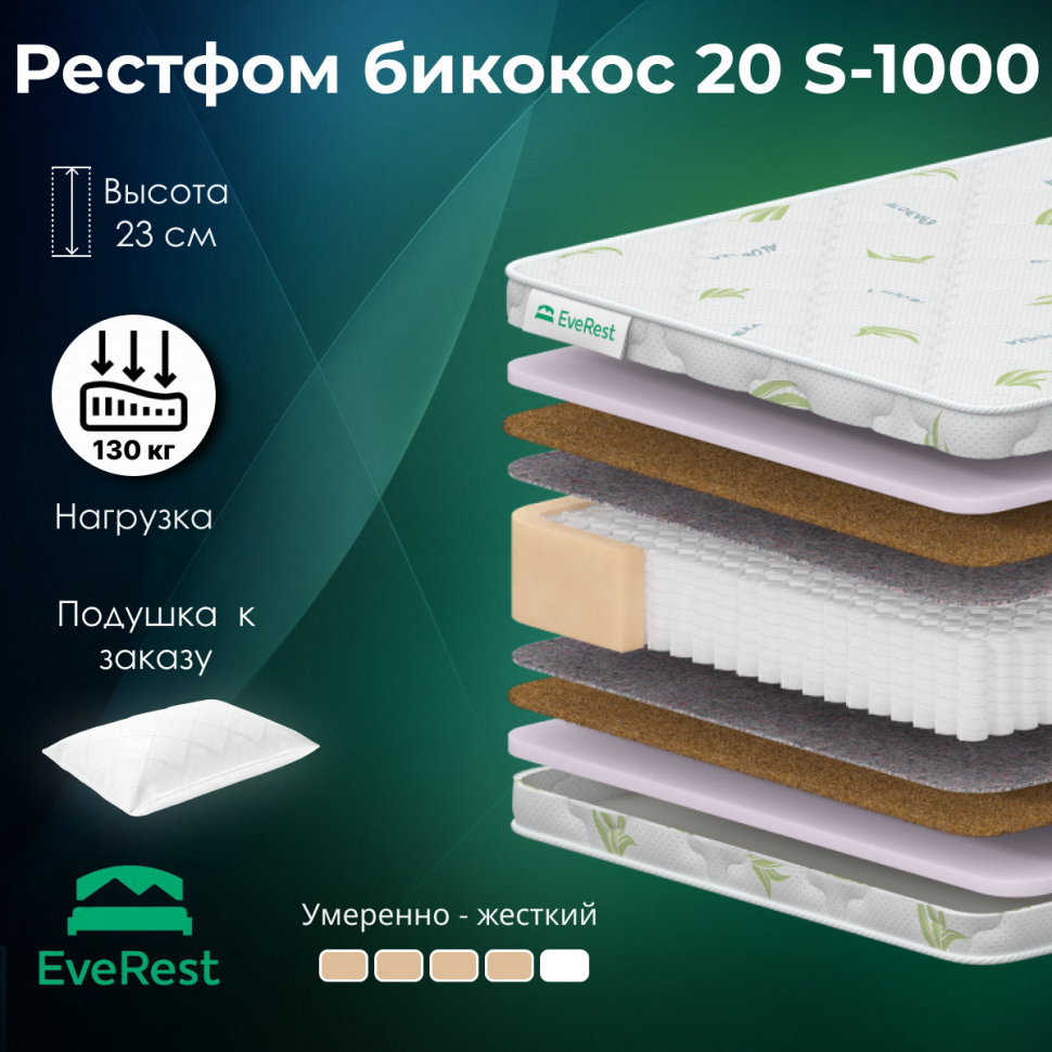 Матрас Everest Рестфом бикокос 20 S-1000, 85x190, высота 23 см, независимые пружины 18 058 ₽ Подробнее