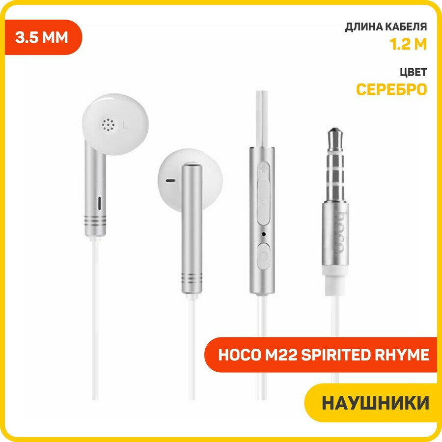Наушники Hoco M22 Spirited Rhyme (3.5 мм), серебро
