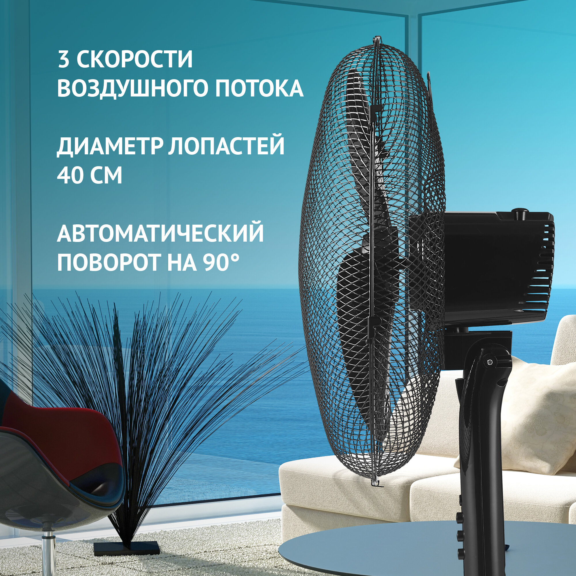 Вентилятор напольный Polaris PSF 1140, 55 Вт, 3 скорости, черный