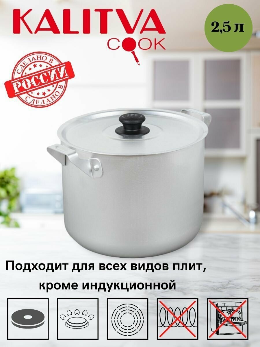 Кастрюли Кастрюля алюминиевая, 2,5 л, глубокая, металлическая крышка