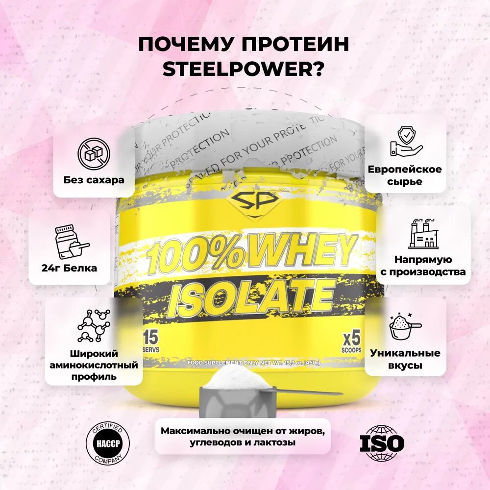 Протеин STEEL POWER 100% Whey Isolate (450 г) Малая банка (Клубника со сливками)