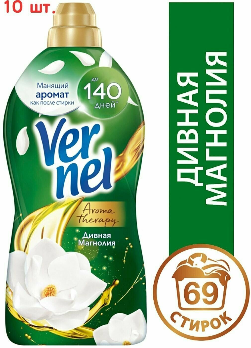 Концентрированный кондиционер ополаскиватель для стирки белья Vernel Ароматерапия Дивная магнолия, 1,74л (69 стирок)