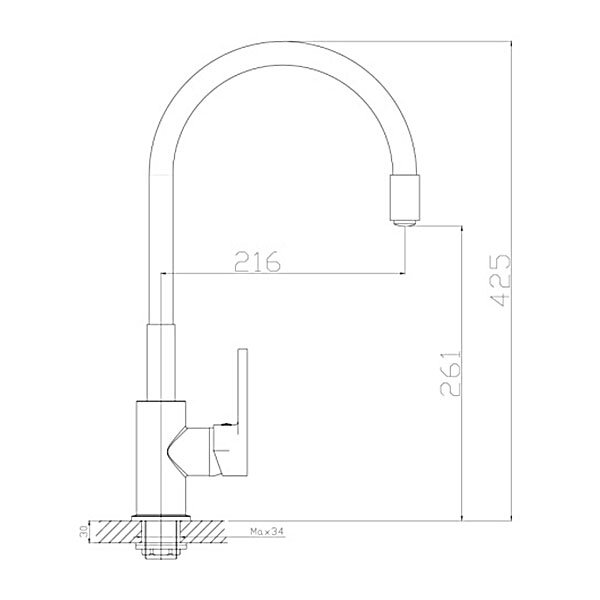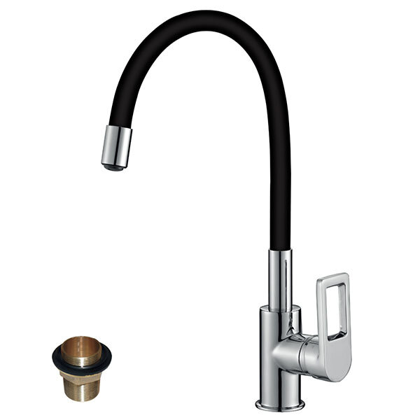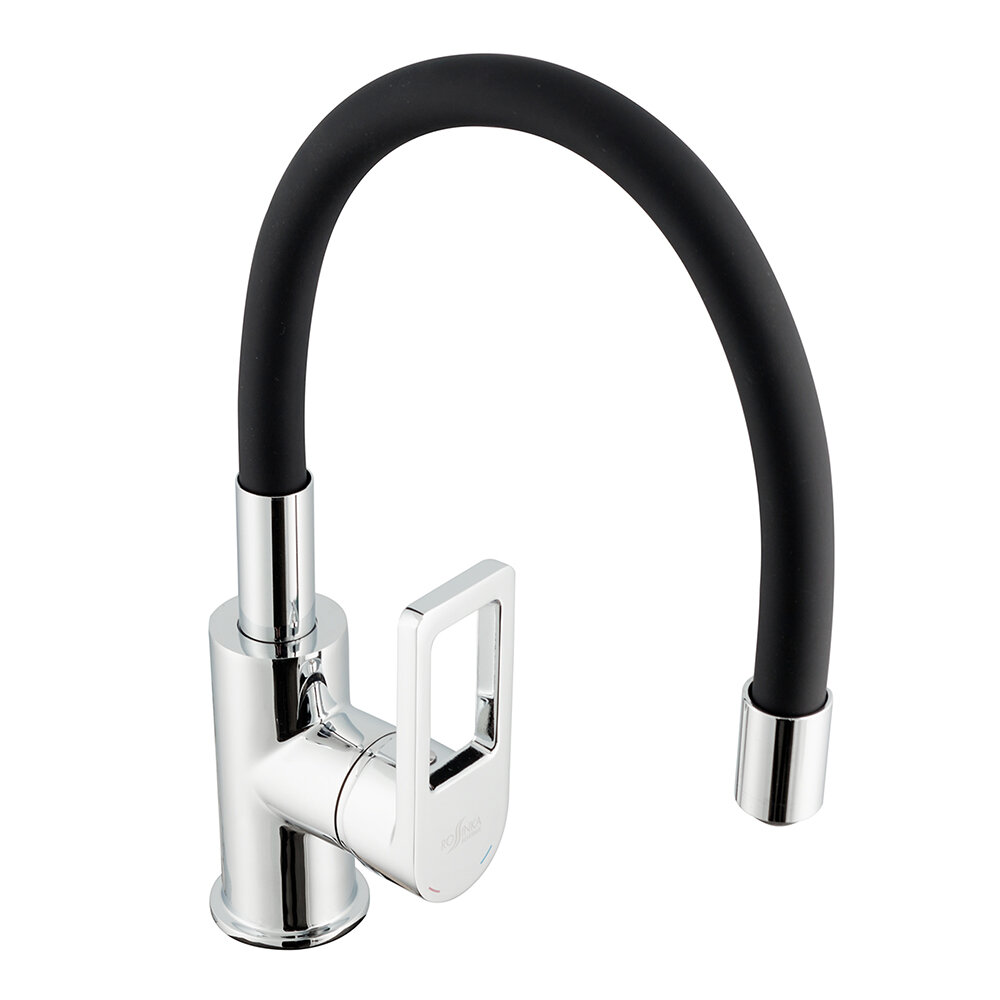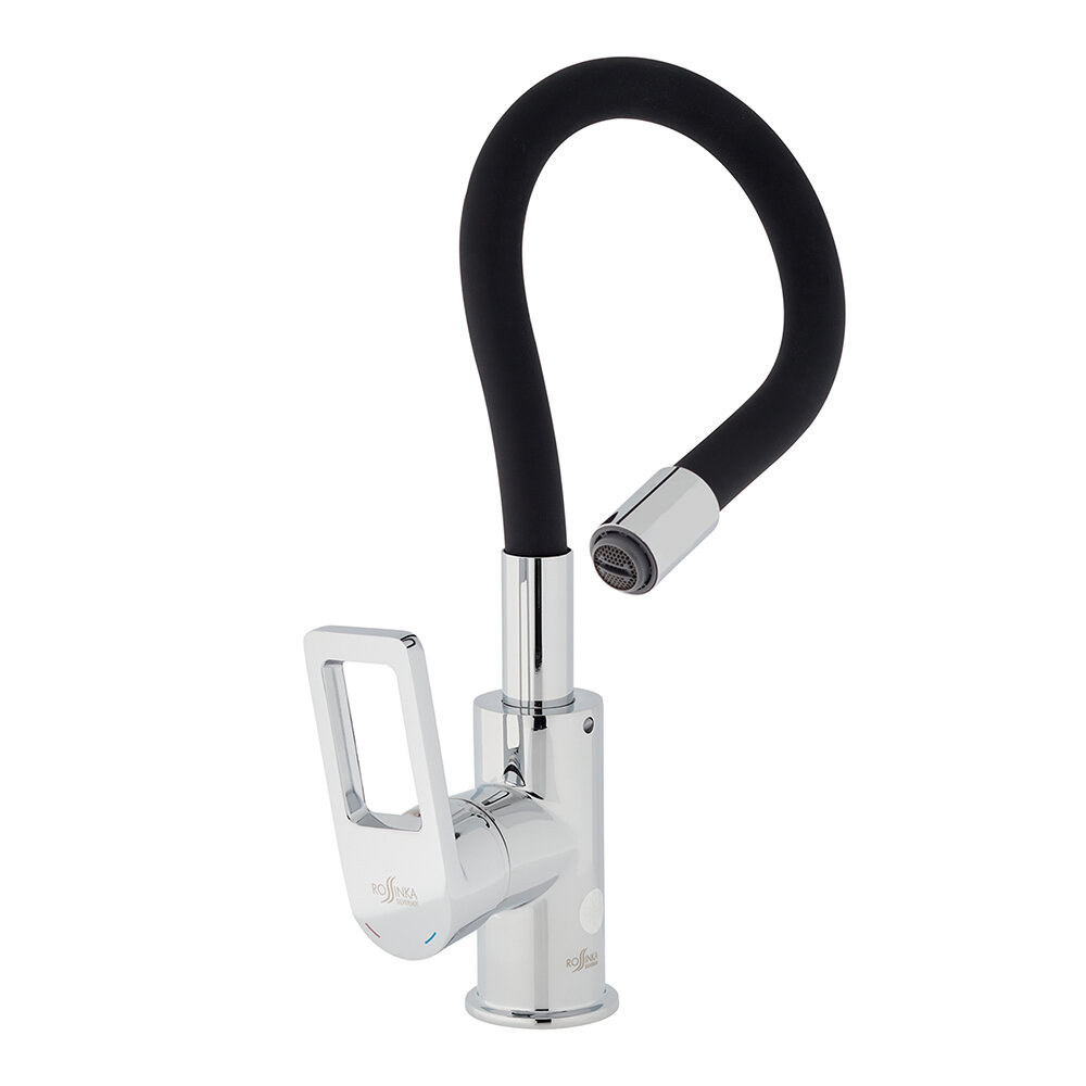 ROSSINKA Z35-35U-Black, Смеситель одноручный (35 мм) для кухни с гибким изливом, латунь, хром/черный