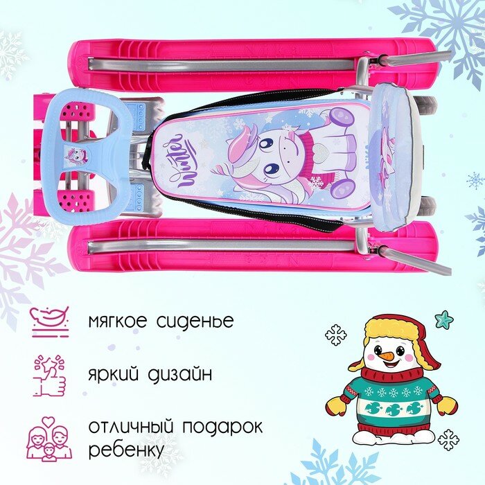 Санки Nika Kids Снегокат с колёсами «Тимка спорт 6 Единорог», ТС6-М/ЕР, с родительской ручкой, со спинкой и ремнём безопасности