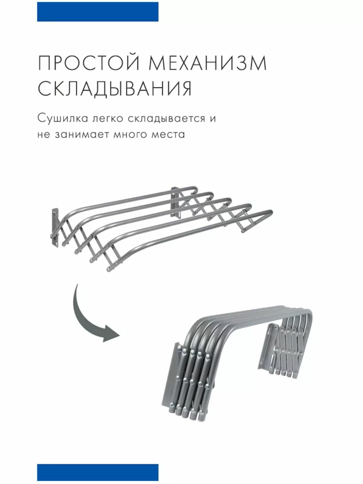 Сушилка для белья настенная раздвижная гармошка 120 см