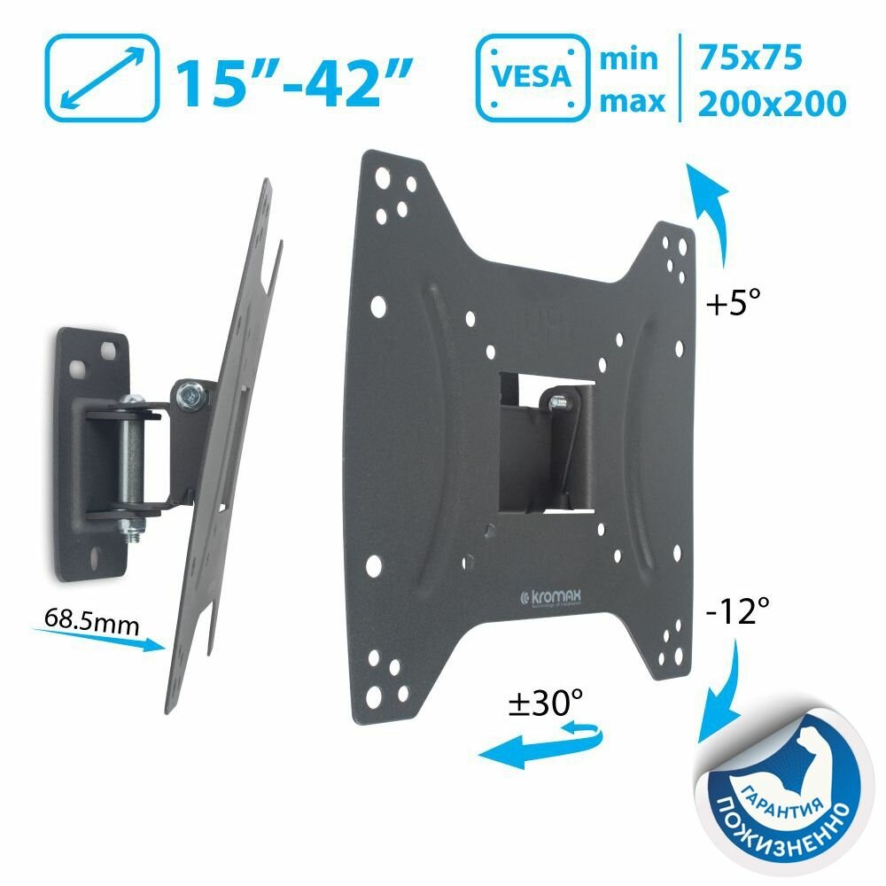 Кронштейн для телевизора Kromax OPTIMA-202, 15-42", настенный, наклон, черный [28006]