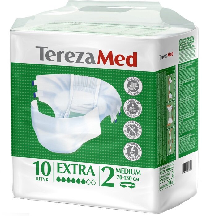 TerezaMed Подгузники для взрослых TerezaMed Extra Medium (№2), объем талии 70-130 см, 10 шт.