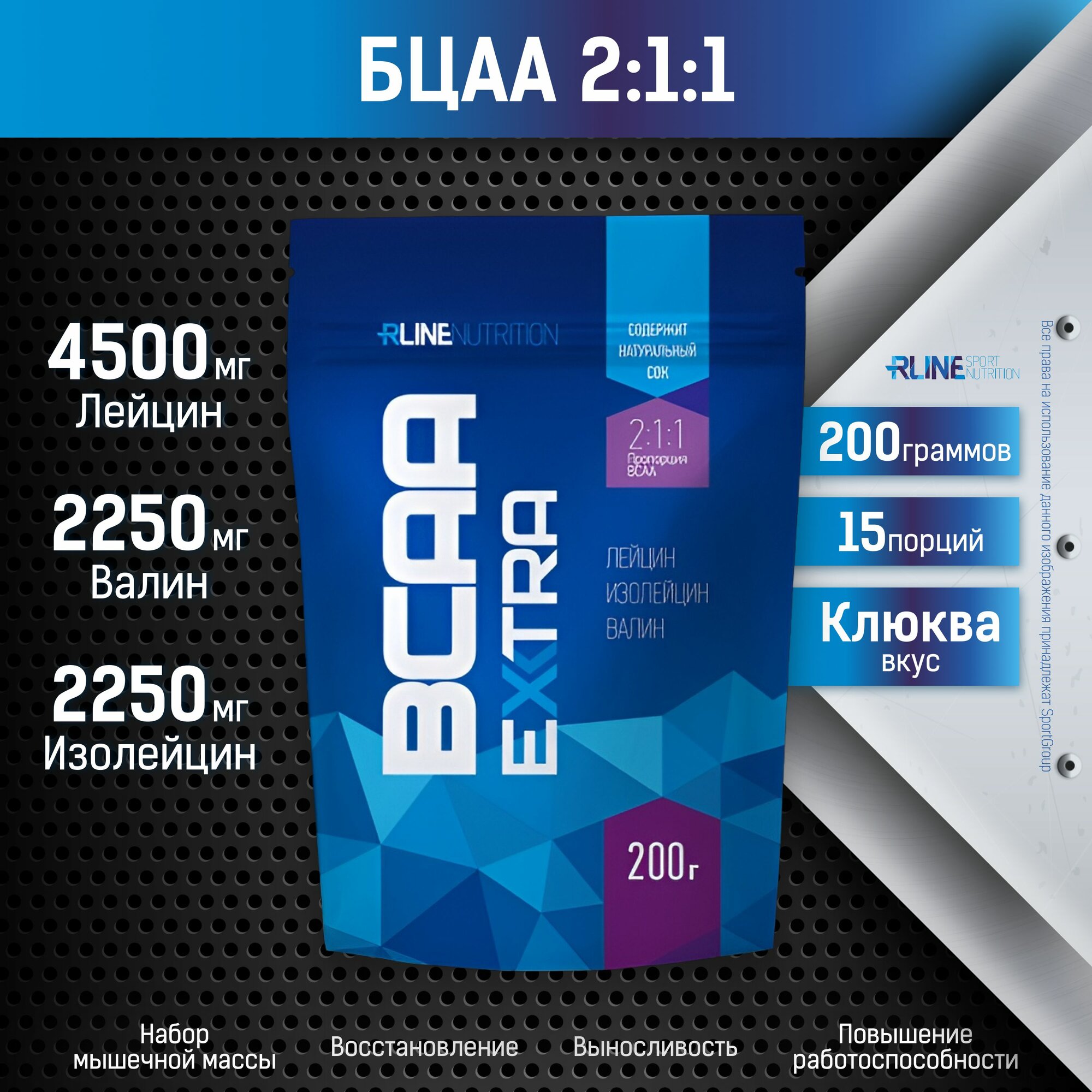 Аминокислоты RLine BCAA Extra 2:1:1, черная смородина, 400 г