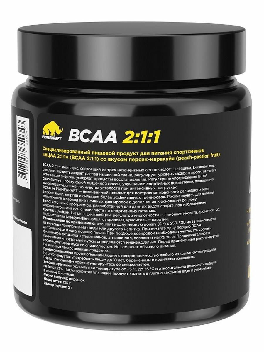 Prime Kraft, Аминокислоты BCAA 2:1:1 «Персик и маракуйя», 150 г