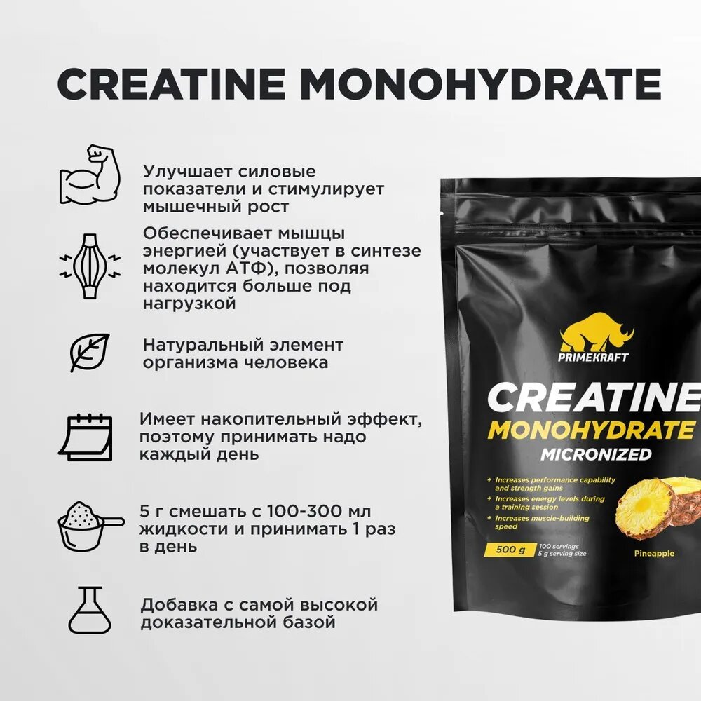 Креатин Креатин моногидрат порошок 500 гр, Prime Kraft Creatine Monohydrate, вкус: ананас