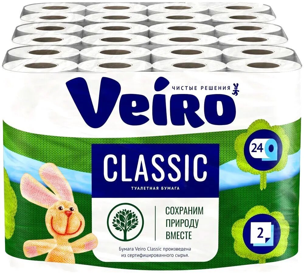 Veiro Бумага туалетная бытовая спайка 24шт 2-х слойная Classic белая 5с224 127072 .