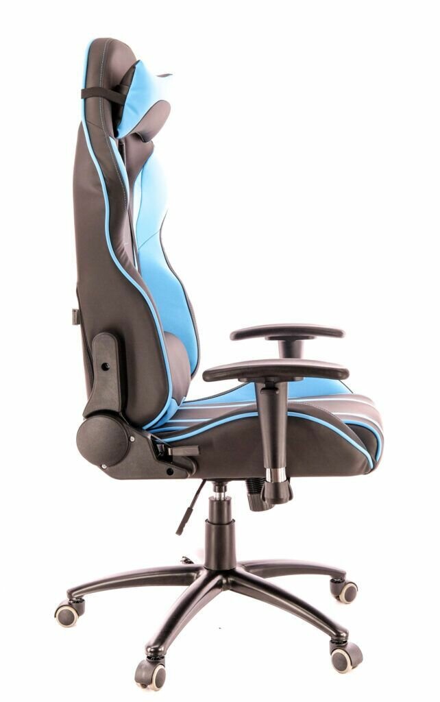 Компьютерное кресло Everprof Lotus S16 игровое экокожа чёрный с голубым .