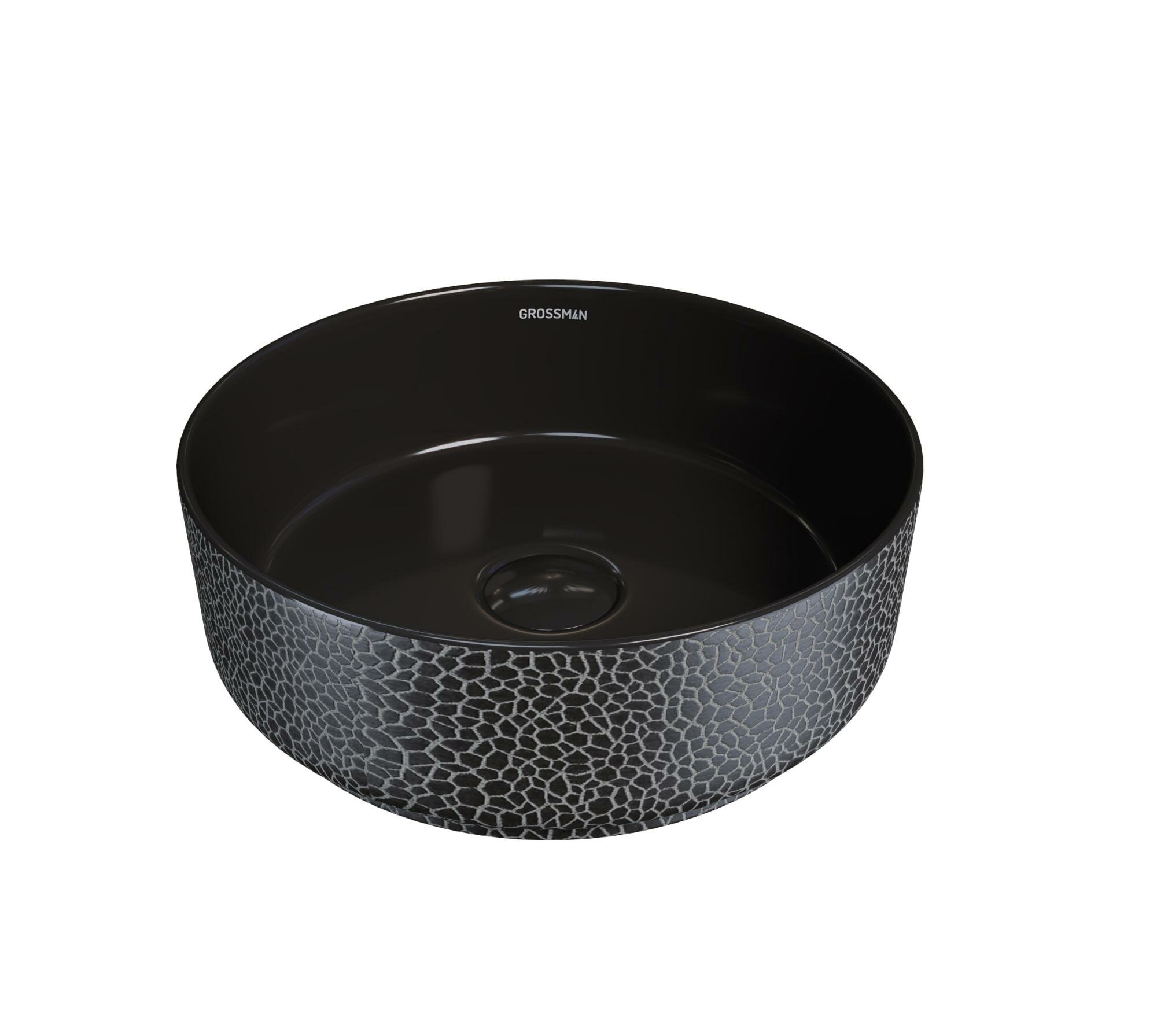 Умывальники Раковина Grossman накладная Color 35.5 GR-5010BBL черная с текстурой кожи крокодила