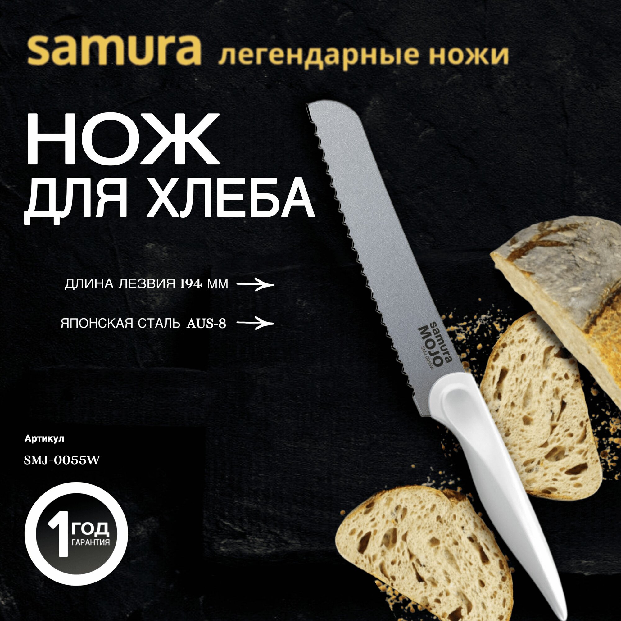Нож для нарезки хлеба кухонный Samura MOJO / хлебный нож 194мм SMJ-0055W 1 791 ₽ Подробнее