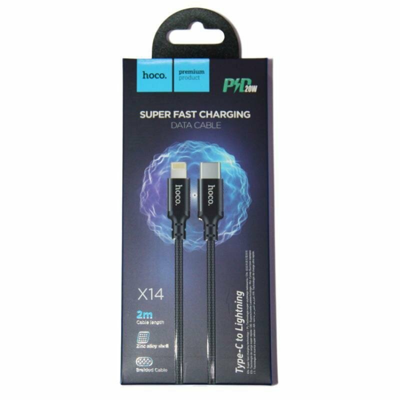 Зарядки для гаджетов Кабель USB-C iPhone Lightning Hoco X14 (2 метра/PD) <черный>