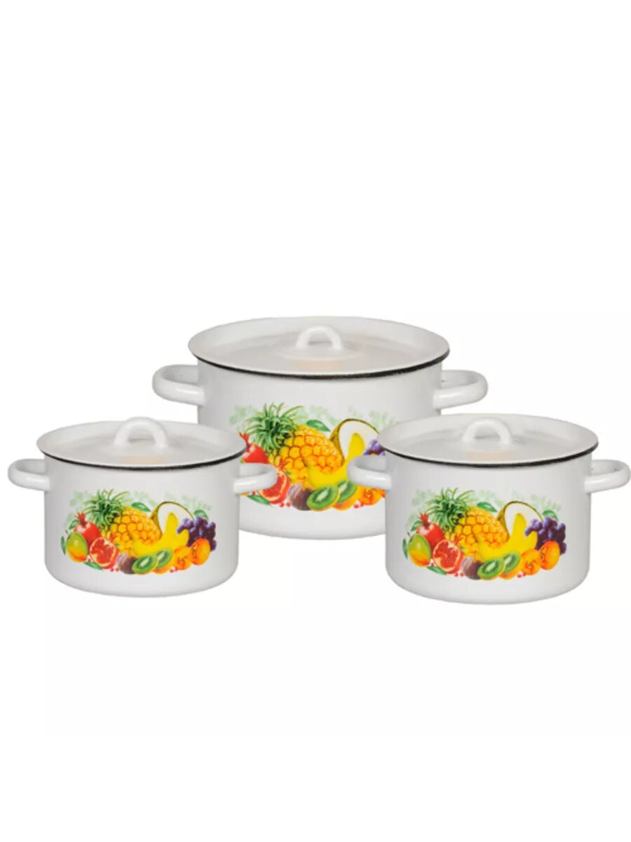 Набор кастрюль эмалированных 1,5л,2,9л,4,5л Экзотика СтальЭмаль
