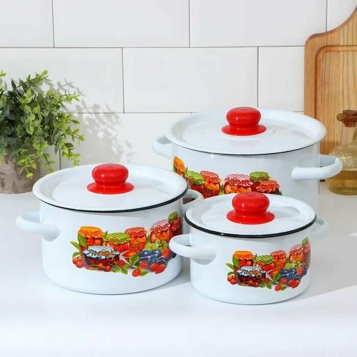 Кастрюля Набор кастрюль эмалированных 1,5л,2,9л,4,5л Варенье СтальЭмаль