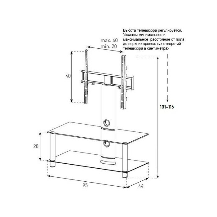 Стойка под ТВ Sonorous NEO 95 серебристый/черный