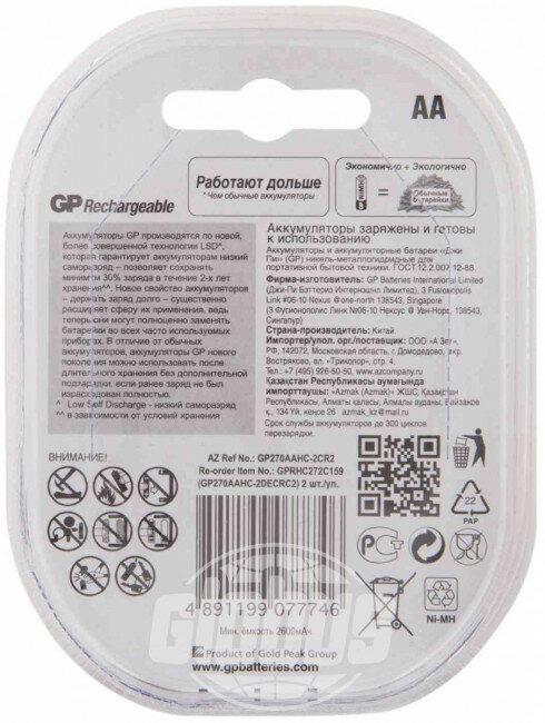 Аккумуляторы и батарейки Батарейка "AA" GP 2700mAh (2шт в блистере)