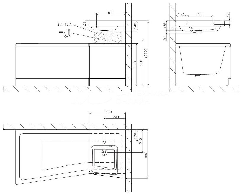 | Тип монтажа | подвеснойнакладной на тумбу |