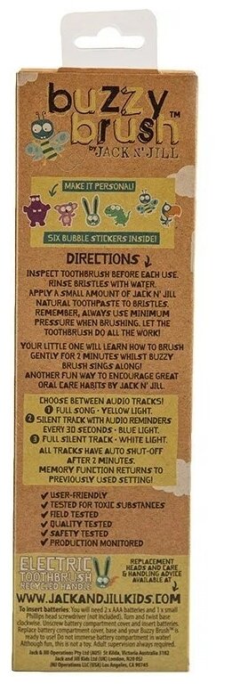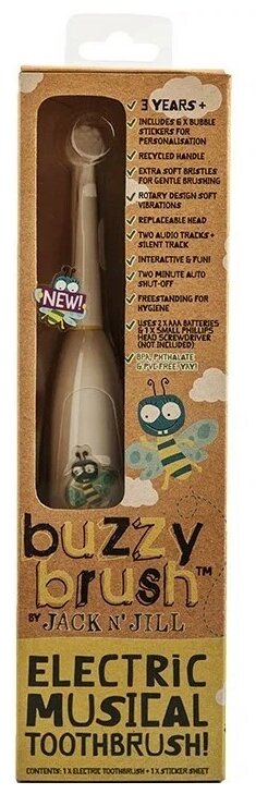 Электрические зубные щетки Jack N' Jill Детская Электрическая музыкальная зубная щетка Баззи (5 стикеров в комплекте)