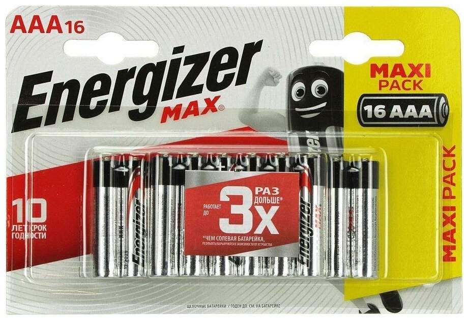 Аккумуляторы и батарейки Батарейки щелочные (алкалиновые) Energizer Max, тип AAA, 1.5V, 16шт (Мизинчиковые)
