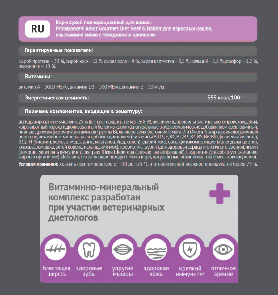 PROBALANCE CAT GOURMET DIET для привередливых взрослых кошек с говядиной и ягненком (1,8 кг)
