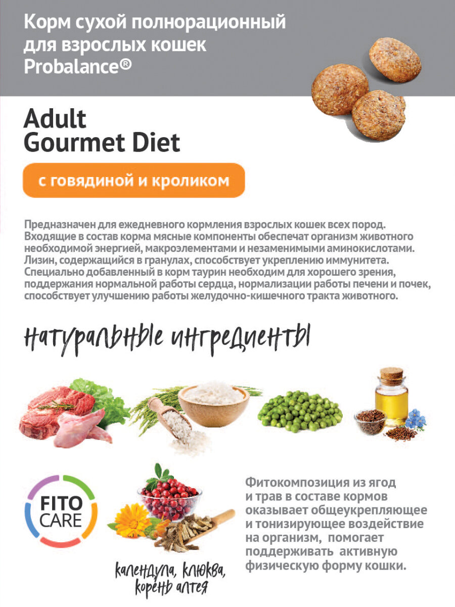 Корм для кошек Probalance Корм сухой для кошек с говядиной и кроликом Gourmet Diet 1,8 кг 38 PB 313 1,800 кг 65521 (1 шт)