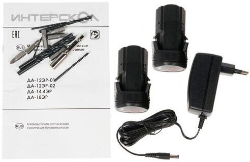 Дрель-шуруповерт аккумуляторная ИНТЕРСКОЛ ДА-12ЭР-02 (Li-ion, 2 аккум., 1,5Ач),