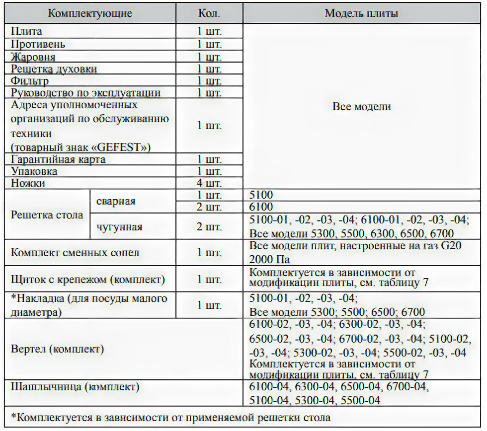 | Решетки конфорок | стальные |