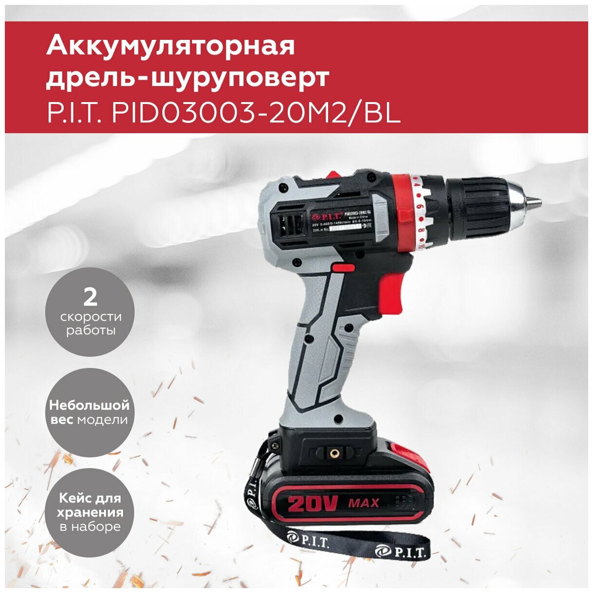 Аккумуляторная дрель P.I.T PID03003-20M2/BL (бесщеточный 18В, акб 1,5 Ач, 32Нм)