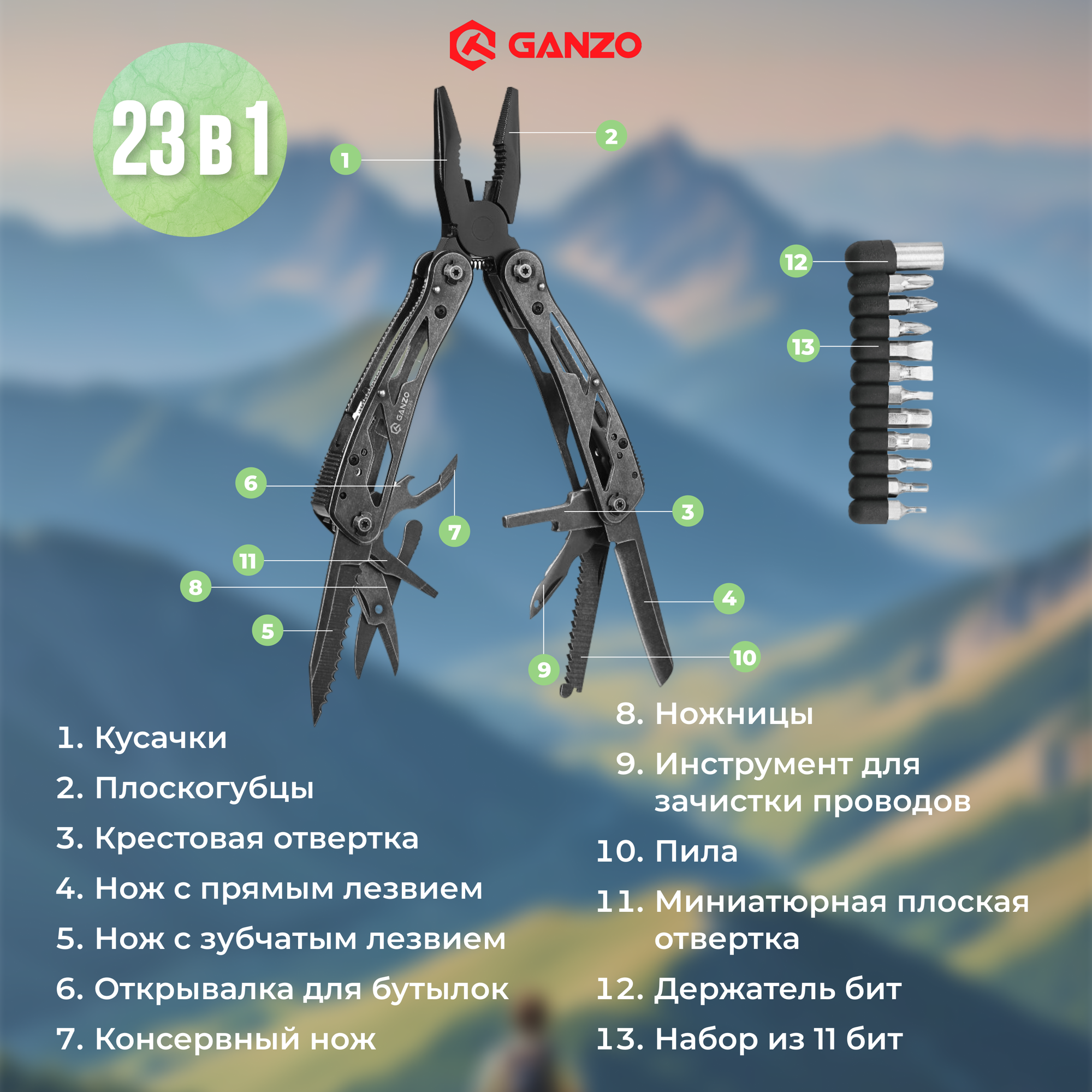 Набор аксессуаров Мультитул пассатижи GANZO G202 черный