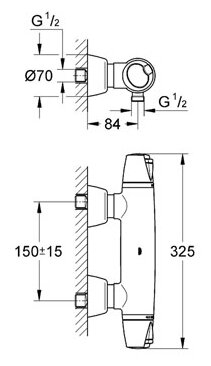 Лучшие цены. Смеситель Grohtherm 2000 Термостат для душа 34169000 настенный монтаж безопасный корпус система Cool Touch GROHE TurboStat® встроенный термоэлемент встроенный стопор смешанной воды Carbodur керамический вентиль 1/2" 180° рукоятка расхода с экономичной кнопкой и индивидуально устанавливаемым стопором стопор безопасности при 38°C отвод для душа снизу 1/2" встроенные обратные клапаны грязеулавливающие фильтры скрытые S-образные эксцентрики с защитой от обратного потока поверхность GROHE StarLight. Магазины в вашем городе.