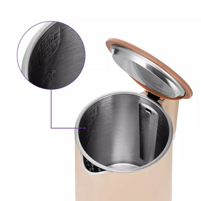 Электрочайники Чайник электрический Kitfort КТ-6662-1, пластик, колба металл, 1.5 л, 2200 Вт, бежевый