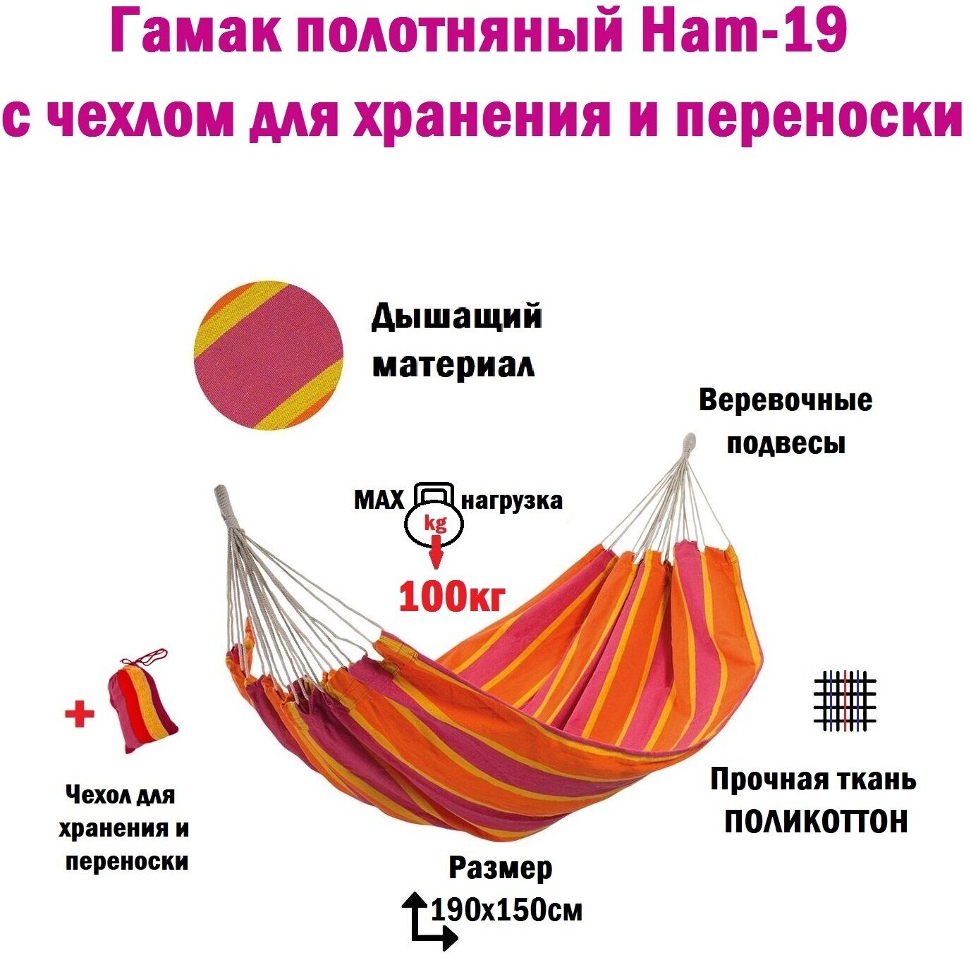 Гамак полотняный Ham-19 с сумкой оранжево-розовый 190х150см 4981