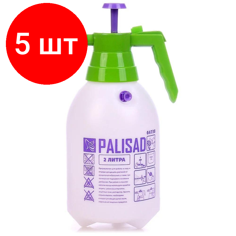 Ручной распылитель Комплект 5 штук, Опрыскиватель 2 л ручной с насосом и клапаном сброса давления Palisad 64738