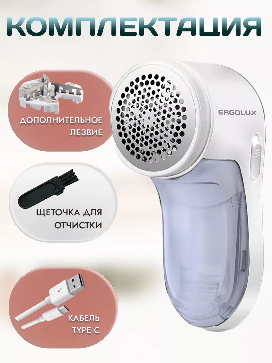 Машинки для удаления катышков Машинка для удаления катышков аккумуляторная ERGOLUX белый USB Type-C